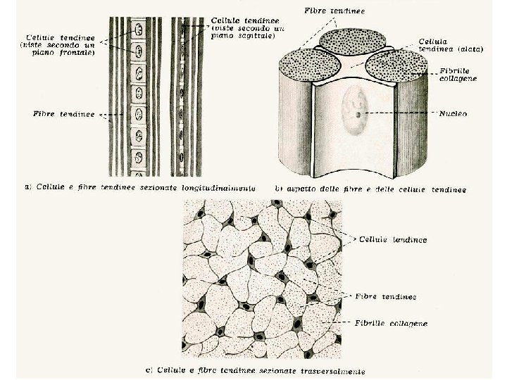 Endomisio Epimisio Perimisio INSERZIONI MUSCOLARI - Carnea o Mediata o Periostea Fibra muscolare - Tendinea o Diretta o Ossea Endomisio Epitenonio Peritenonio Tenocita Colonna tendinea Fibre di Sharpey Colonna tendinea Osso