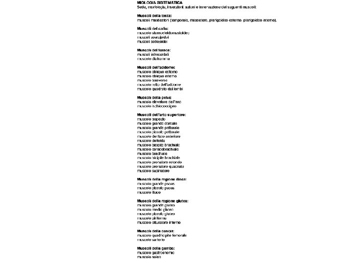 LIQUIDO SINOVIALE O SINOVIA PARTE CORPUSCOLATA (100 -300/mm 3) • monociti • linfociti • macrofagi • polimorfonucleati • detriti cellulari PARTE FLUIDA SANGUE: H 2 O (95%), glucosio (< sangue), ioni (>Ca del sangue) proteine (2 -3%) albumina, globuline (non fibrinogeno) SINOVIOCITI: mucine, proteine legate a glicosaminoglicani GAG, compreso acido jaluronico