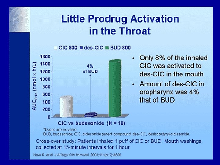 Improvements in steroids Ciclesonide Inactive compound Lungs Activated by esterases to Desisobutyrl ciclesonide Systemic circulation Inactive