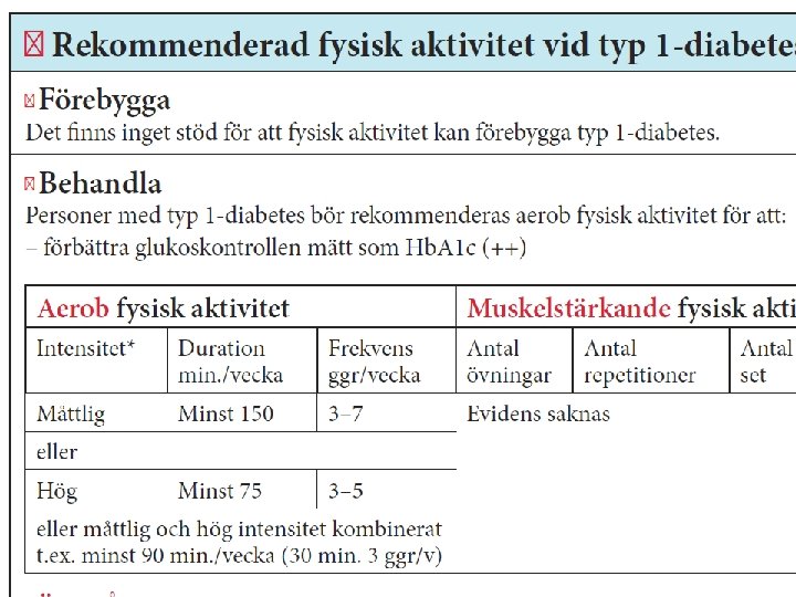 Fysisk aktivitet och diabetes typ 1, rekommendationer, FYSS