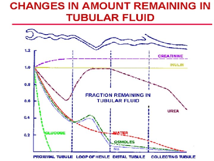 Většina filtrátu musí tedy zpět • • To se skutečně děje mechanismem tubulární reabsorpce. V závislosti na lokalizaci tubulární tekutiny dochází k různě velké absorpci glomerulárního filtrátu zpět do intersticia a následně plasmy.