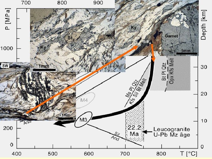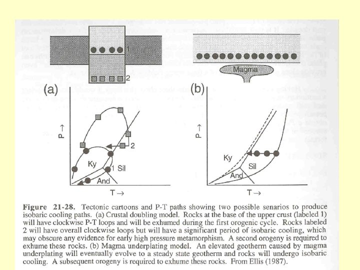 • Důležité údaje • (1) Teplotu > 800°C nemůžeme v kůře dosáhnout bez tepelného zdroje (magma). • (2) Při vzniku příkrovů je možné pozorovat rozdílnou P-T-časovou dráhu pro spodní a svrchní příkrov. • (3) Délka trvání regionální metamorfózy se počítá na desítky miliónů let zatímco kontaktní metamorfóza 10000 let.