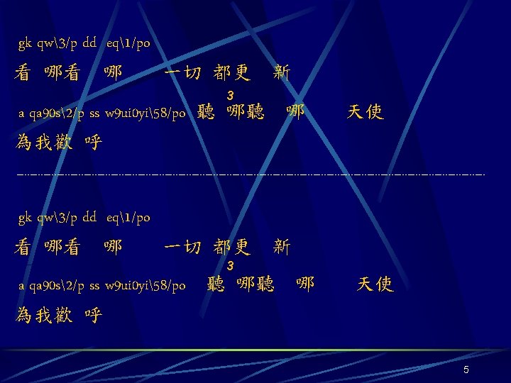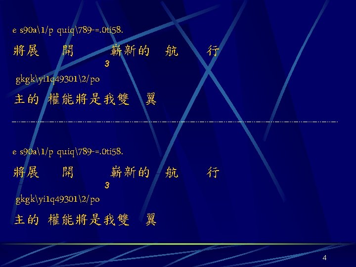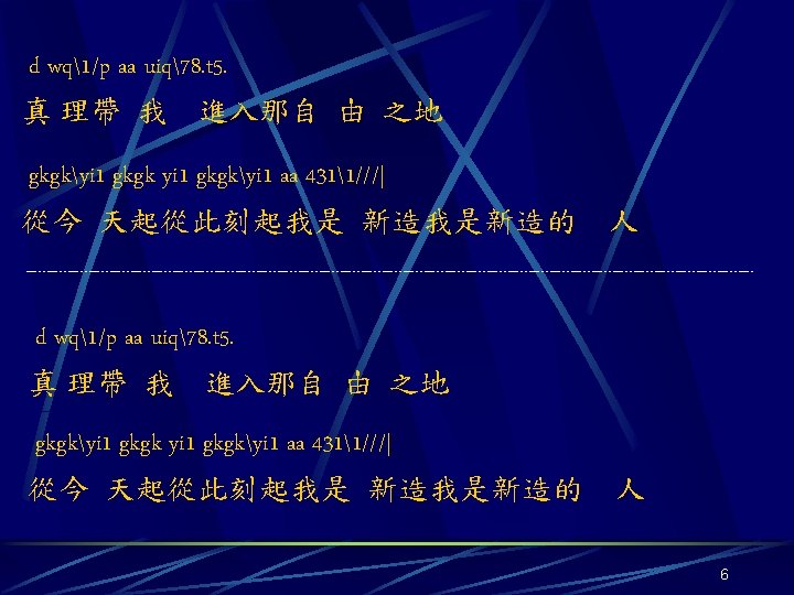 G 44 titi ti aa q 58 yiyi Slides: 7 Download presentation G 4/4 titi ti aa q 58. yiyi yi ss w 68. 飛越 時空的領域 聆聽 靈魂的吶喊 uiui ui jkjk 9 - 078/yiti ti gkgk 9058/ 穿過 天之涯 越過 地之極 2 titi ti aa q 58. yiyi yi ss w 68. 卸下 漂泊的心情 奔向 永恆的生命 uiui jkjk ui 98078 w 90 uiqq q aa 90 q p 真理在我心 喔 真愛 在我心 3