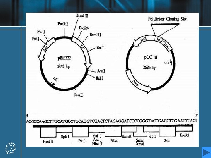 Hosts and vectors • Hosts: E. coli yeast • Vectors: ♦ Vectors must normally be capable of being replicated and isolated independently of the host’s genome. ( natural replicons) ♦ Vectors also incorporate a selectable marker, a gene which allows host cells containing the vector to be selected from amongst those which do not, usually by conferring resistance to a toxin, or enabling their survival under certain growth conditions. ♦ Familiar vectors