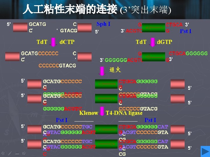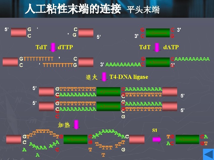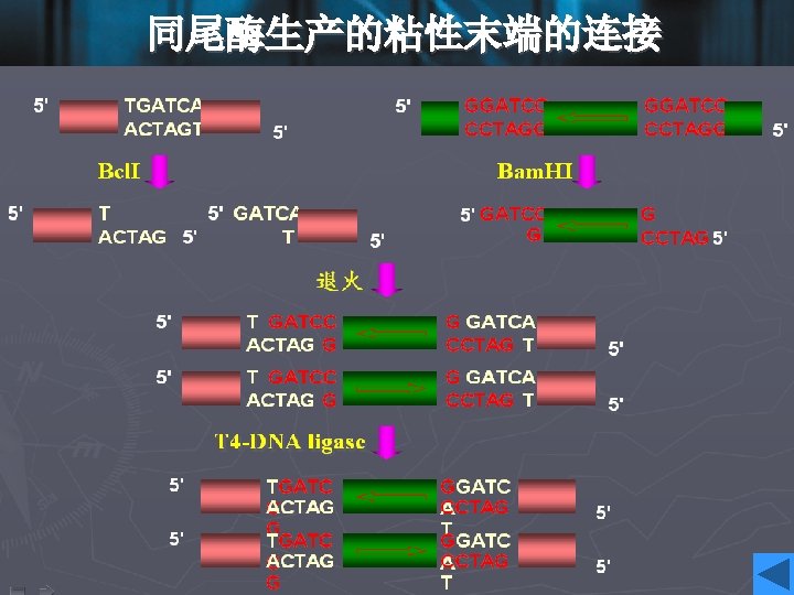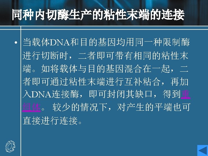 Increasing recombination fraction • Increasing the rate of foreign DNA fragments and vectors: 5: 1 -10: 1 • One solution is to prepare both the target and the vector using a pair of distinct restriction enzymes, such that they have noncompatible cohesive ends at either end. • If it is inconvenient to use two restriction enzymes, then the linear vector fragment may be treat with the enzyme alkaline phosphatase after restriction enzyme digestion. • 加装同聚尾末端