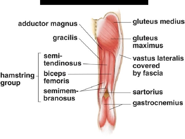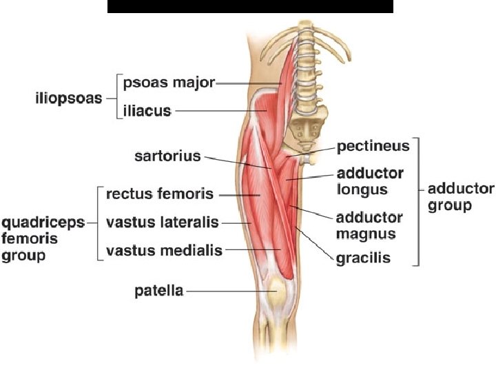 G Muscles of the Arm move the forearm Slides: 27 Download presentation G. Muscles of the Arm * move the forearm (elbow) 1. biceps brachii * L: anterior upper arm * A: flexes elbow, supinates hand 2. brachialis * L: medial upper arm * A: flexes elbow 3. triceps brachii * L: posterior upper arm * A: extends elbow H. Muscles of the Forearm * move the hand (wrist) and fingers 1. supinator * L: anterior/medial forearm * A: supinates hand 2. pronator teres * L: anterior/upper forearm * A: pronates hand 3. flexor/extensor carpi muscles * L: forearm * A: flex/extend wrist 4. flexor/extensor digitorum muscles * L: forearm * A: flex/extend fingers I. Muscles that move the Hip and Lower limb 1. Muscles That Move the Hip (Femur) a. iliopsoas * L: deep anterior hip * A: flexes hip b. gluteus maximus * L: posterior hip * A: extends hip c. gluteus medius * L: lateral hip * A: abducts hip d. adductor group (groin) * L: medial thigh * A: adducts hip e. sartorius * L: crosses front of thigh * A: flexes, abducts, rotates hip 2. Muscles that move the Knee a. quadriceps femoris group * L: anterior thigh * A: extends knee vastus lateralis vastus medialis vastus intermedius rectus femoris b. hamstring group * L: posterior thigh * A: flexes knee, extends hip semitendinosus semimembranosus biceps femoris 3. Muscles that Move the Ankle and Toes a. gastrocnemius * L: posterior lower leg (calf) * A: plantar flexes, everts ankle b. tibialis anterior * L: anterior lower leg (shin) * A: dorsiflexes, inverts foot c. peroneus longus and brevis * L: lateral lower leg * A: evert, plantar flex foot d. flexor/extensor digitorum longus * L: lateral posterior lower leg * A: flex/extend toes