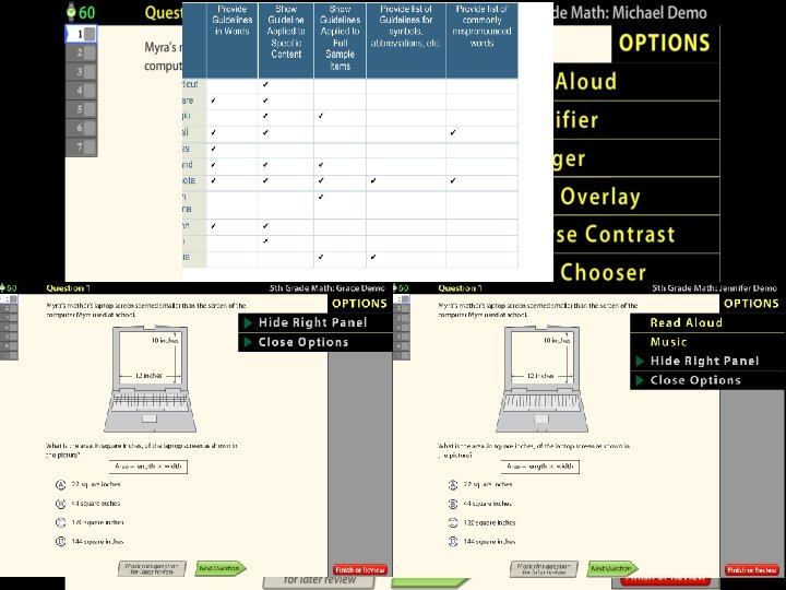 Audio Item Examples • The GAAP Project website contains draft math and ELA audio guidelines and item examples • Item examples 1) describe an issue 2) present two items that show different ways of presenting the item • http: //nimbletools. com/gaap/ • Send us your feedback and opinions on the draft guidelines and different item representations!