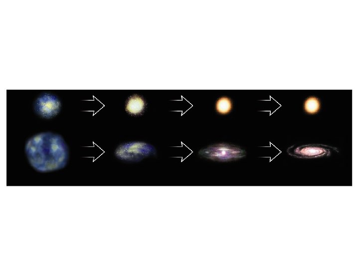 Denser regions contracted, forming protogalactic clouds H and He gases in these clouds formed the first stars