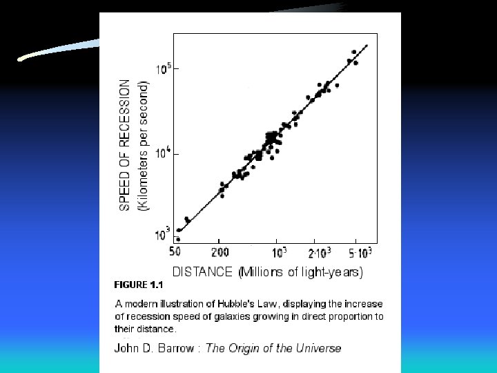 The universe is expanding! • Measure distance to galaxies • Measure recessional speed of galaxies – by analyzing the doppler shift of emission spectra from the galaxies – spectra are redshifted - galaxies are moving away from us! • Galaxies at greater distances are moving faster – Hubble law • By determining the Hubble constant, we can calculate approximate distances to the most distant galaxies. • Determining the Hubble constant is the hard part due to uncertainty in distance data – between 50 and 80 km/s/Mpc