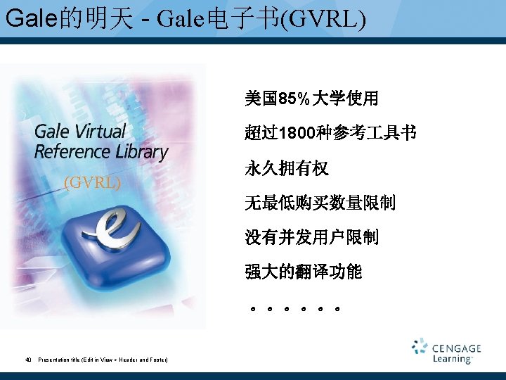 HTML网页格式阅读 41 Presentation title (Edit in View > Header and Footer) Gale 电子书