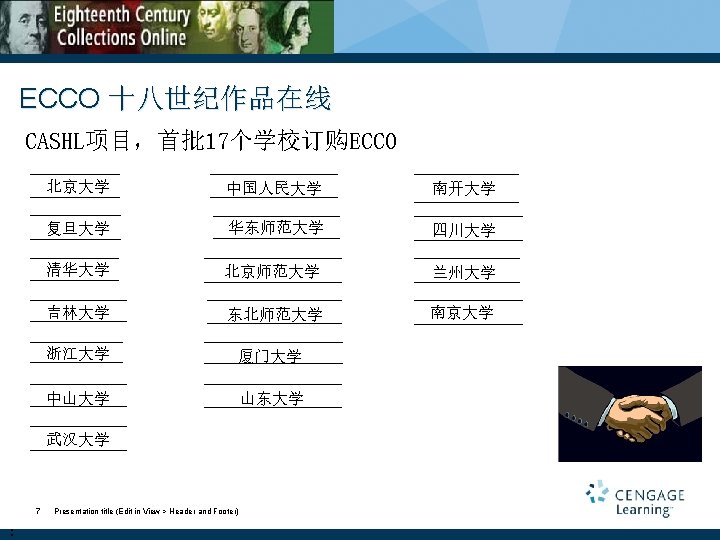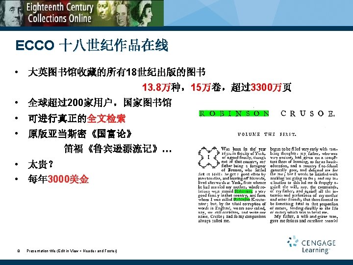 Gale的昨天 Eighteenth Century Collections Online 十八世纪作品在线 ECCO 6 Presentation title (Edit in View > Header and Footer)