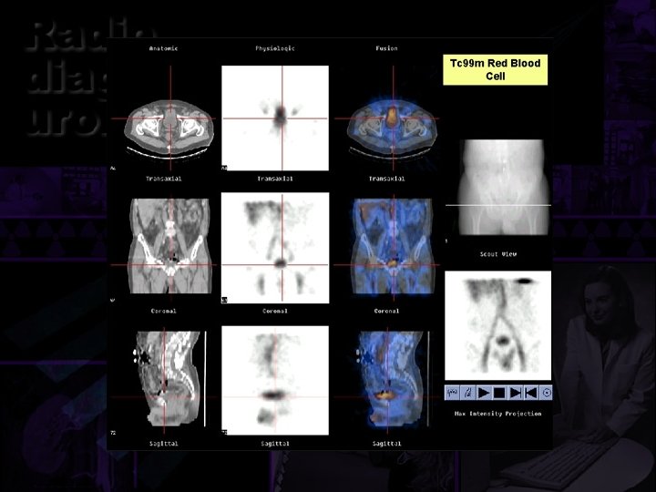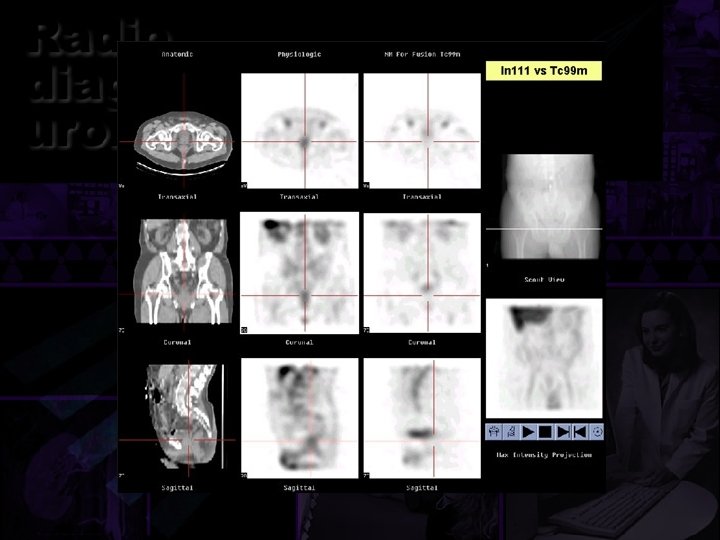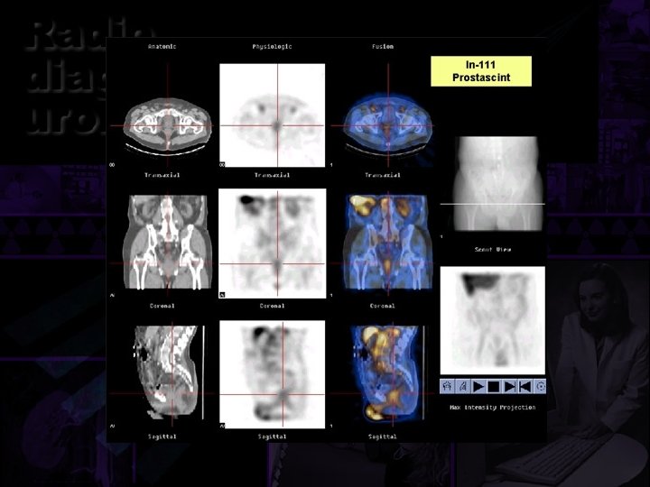 Gamagrafía en urología. • Renograma isotópico. • Renograma en la HRV. • Renograma en obstrucciones. • Renograma en transplante. • Radiocistografía. • Gamagrama testicular. • PET y SPECT. • Imágenes de fusión. • Inmunogamagrafía en carcinoma prostático.