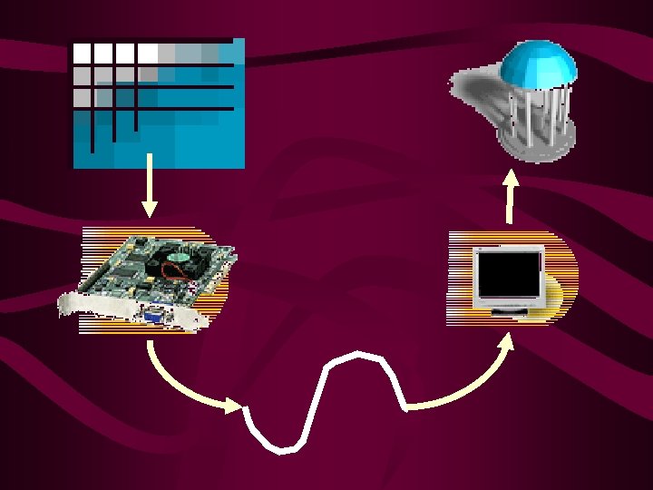 Video Formats • • • NTSC - 525 x 480, 30 f/s, interlaced PAL - 625 x 480, 25 f/s, interlaced VGA - 640 x 480, 60 f/s, noninterlaced SVGA – 800 x 600, 60 f/s noninterlaced RGB - 3 independent video signals and synchronization signal, vary in resolution and refresh rate • Time-multiplexed color - R, G, B one after another on a single signal, vary in resolution and refresh rate