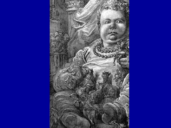 • Son père, en découvrant l’enfant, s’écrie : « Quel grand (gosier) tu as » Et l’enfant est appelé alors Gargantua. • Pour l’allaiter, il faut le lait de 17 913 vaches. • Enfin, pour le calmer, on lui donne à boire. Gargantua est habillé de blanc et de bleu, les deux couleurs du blason de son père.