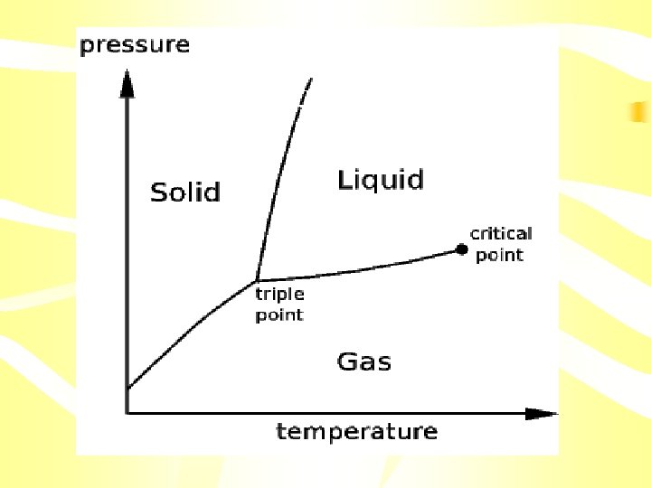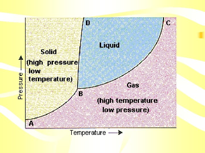 • Along BC line: rate at which liquid boils to form a gas=rate at which gas condenses to form a liquid • The solid line between points B and D contains the combinations of temperature and pressure at