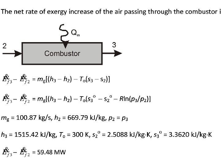 For steady-state operation, negligible heat transfer with the surroundings, and no significant changes in kinetic and potential energy, energy balance around the heat exchanger gives Combined cycle performance can be analyzed using mass and energy balances. To complete the analysis, however, the second law is required to assess the impact of irreversibilities and the true magnitudes of losses.