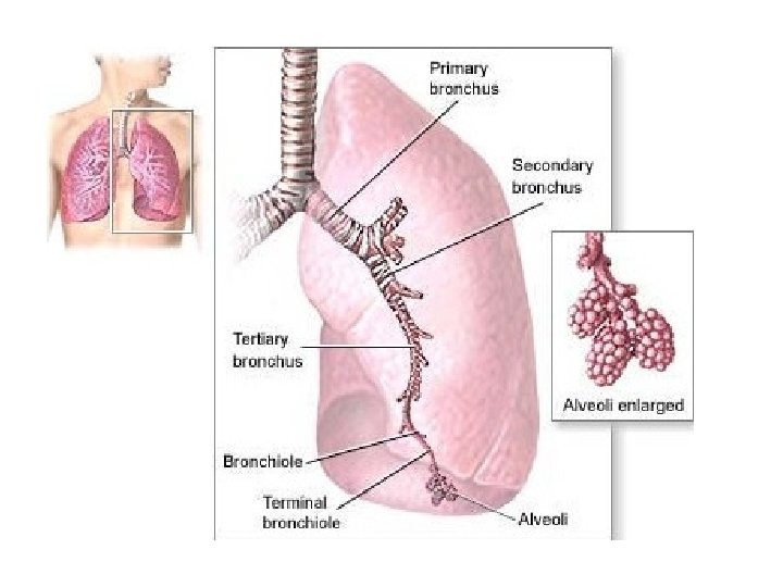 Trachea, Bronchi and Bronchioles • Leading from the throat to the lungs is the trachea • At the base of the trachea are two bronchi (singular: bronchus) which subdivide forming a “bronchial tree” in each lung • Cartilage in the trachea and bronchi keeps these airways open and air resistance low • Cartilage also prevents them from collapsing or bursting as the air pressure changes during breathing