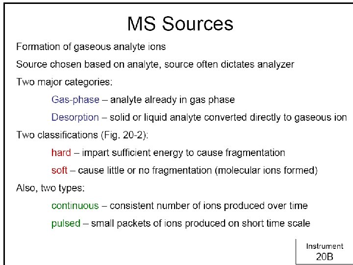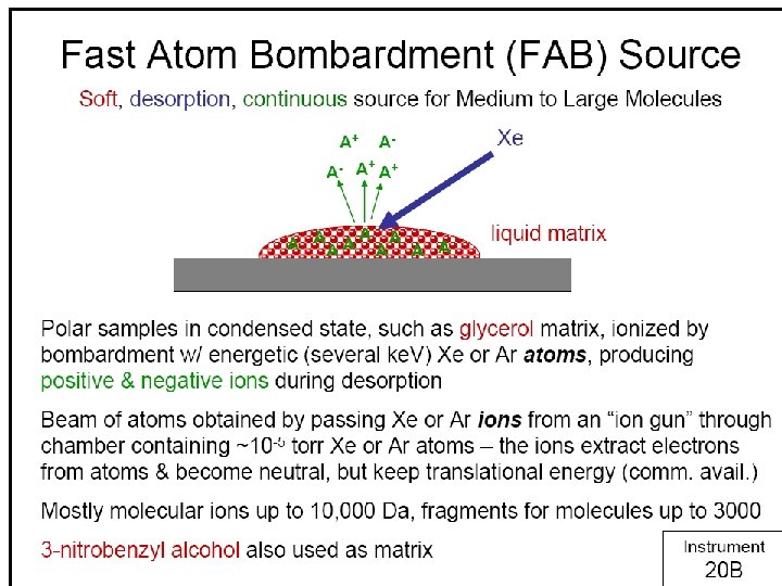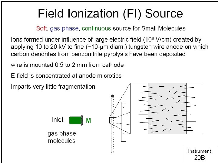 Chemical ionization • • • CH 4+ + CH 4 CH 3+ + CH 4 CH 5+ + MH C 2 H 5+ + MH CH 5+ + CH 3 C 2 H 5 + + H 2 MH 2+ + CH 4 MH 2+ + C 2 H 4 M + + C 2 H 5 Proton transfer Hydride transfer