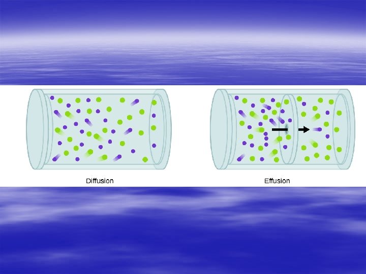 § Diffusion- spontaneous mixing of particles of two substances due to their random motion § Rate depends on: speeds, diameters, attractive forces of particles, temperature