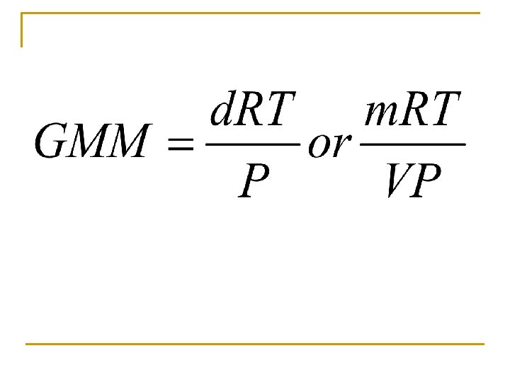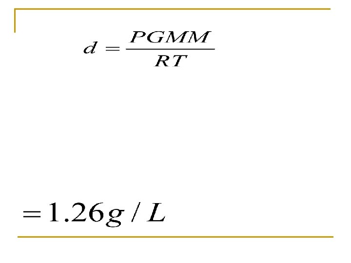 n GMM = molar mass d = density = mass/volume (g/L) R = 0. 0821 n T = temperature (K) n n