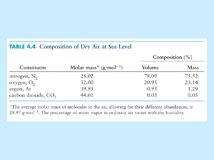 Mole Fractions • The ratio n 1/n. T is called the mole fraction (denoted x 1), a dimensionless number between 0 and 1. Mole fraction of N 2 in air is 0. 78, therefore if the total barometric pressure is 760 torr, the partial pressure of N 2 is (0. 78)(760) = 590 torr.