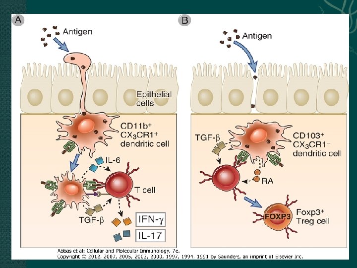 Antigen-sampling DCs they extend dendrites through the junctions between adjacent epithelial cells,these DCs are capable of processing and presenting protein antigens to T cells within the GALT Fc receptor–mediated pathways neonatal Fcγ receptor (Fc. Rn)