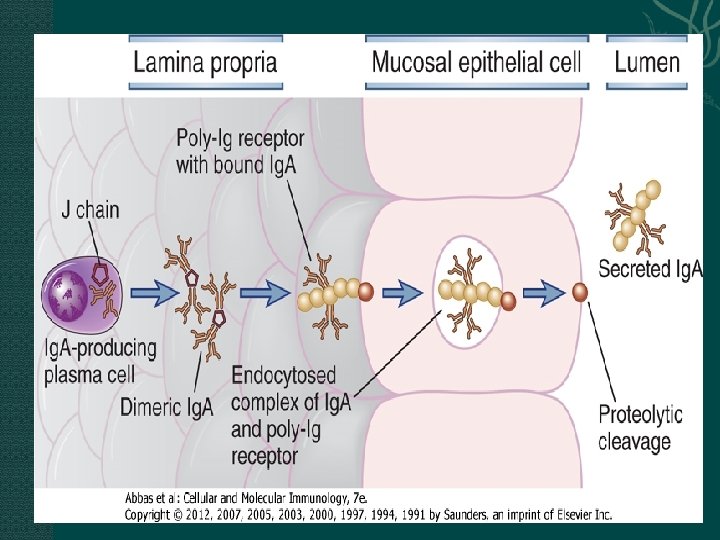 Secreted Ig. A is transported through epithelial cells into the intestinal lumen by an Ig. A/Ig. M-specific Fc receptor called the poly-Ig receptor