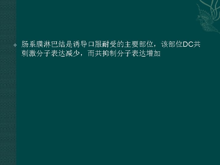 The physiologic role of oral tolerance is speculated to be the prevention of potentially harmful immune responses to food proteins and commensal bacteria 其可能的机制: 口服高�量抗原�致特异性 T�胞凋亡或失能,巨噬�胞 在吞噬凋亡�胞�程中�生 TGF-β,诱导Treg�生 口服低�量抗原����性 T�胞