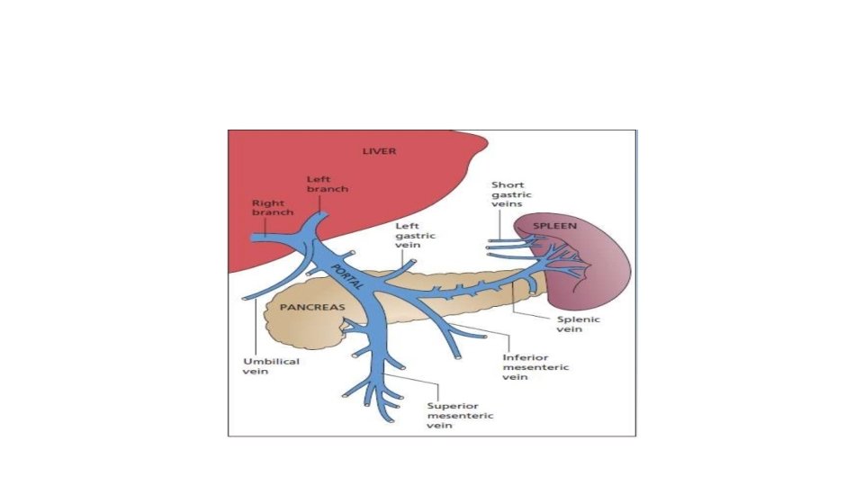 Normal blood flow to the GIT • Venous blood from GIT is delivered to the liver via the portal vein before reaching inferior vena cava. • So drugs and other materials absorbed in the intestines are processed by the liver before entering the systemic circulation • If this flow is impaired: portal hypertension develops. • Portal hypertension causes esophageal varices