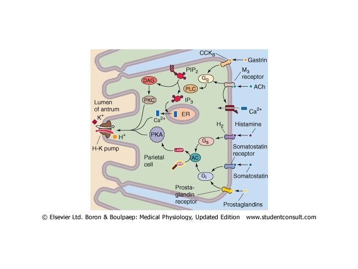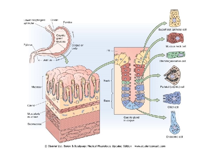 • Pepsinogen – Hcl (1. 8<p. H<3. 5) – Stimulation (Hcl, A. ch) • Internal Factor – B 12 – Pernicious anemia • Gastric barrier • Pyloric (chief) cell – Mocous – Gastrin (G cells, protein)