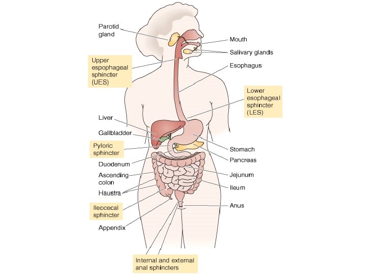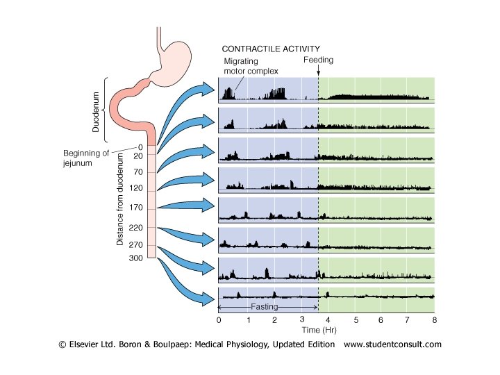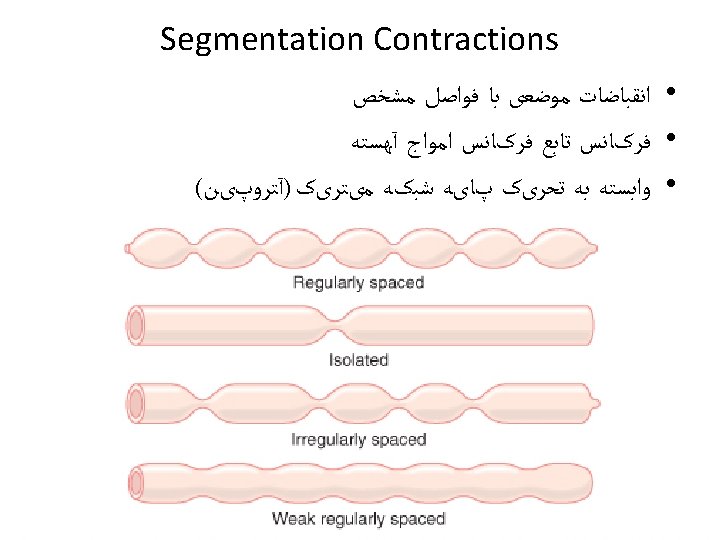 GI motility • propulsive movements – Peristalsis – Intestinal distention – Chemical/physical stimulation – Parasympathetic stimulation (blocked by atropin) – Myentric plexus – Unidirectional – Receptive relaxation – Peristaltic Reflex and the “Law of the Gut. ” • mixing movements – blocked by a sphincter – local intermittent constrictive contractions