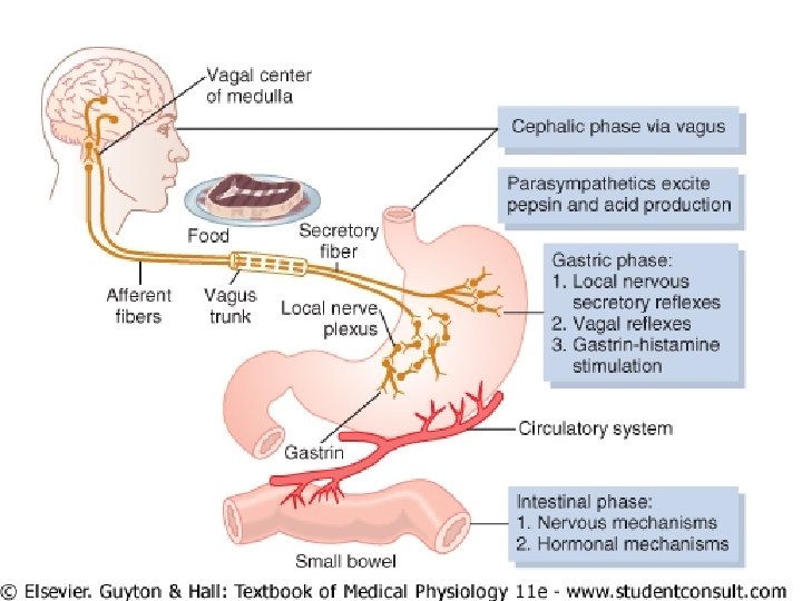 Hormonal control Gastrin • “G” cells of the antrum (stomach) – distention, – AA, – Gastrin Releasing Peptide (vagal stimulation) • Gastric acid secretion • Growth of mucosa
