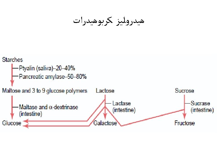 ﻫﻴﺪﺭﻭﻟﻴﺰ ﻛﺮﺑﻮﻫﻴﺪﺭﺍﺕ • Starch • Ptyalin • Pancreatic amylase • Maltase & dextrinase • Lactase • Sucrase