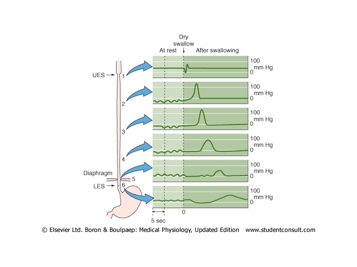 Lower Esophageal Sphincter • Normal pressure • Prevents reflux • Abdominal pressure • Receptive relaxation • achalasia