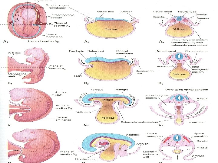 FOLDING OF EMBRYO - Folding means conversion of the flat trilaminar embryonic disc into a cylindrical embryo. Time: Folding of the embryo begins by the end of the 3 rd week. It is completed by the 4 th week.