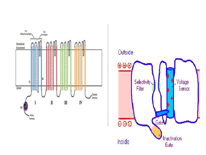 Voltage sensing in Na and Ca channels: • Positive charges in the voltage sensing domain, presence of Arginine and histidine repeats in this segment. • Gate acts as a mechanical obstruction to ion flow. • Channel closes milliseconds after opening.