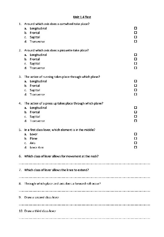 GCSE Planes & Axis: What do I need to know? Know the location of the planes of movement and application to examples. Know the location of the axis of rotation and application to examples. Name of Plane _________________________ Description: Linked Movements: Linked Axis: Example: Name of Plane _____________ Description: Linked Movements: Linked Axis: Example: