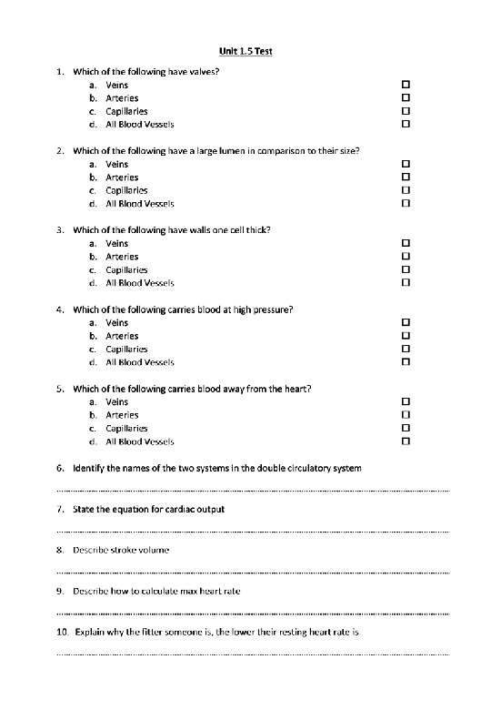 GCSE Cardiovascular System: What do I need to know? Know the double circulatory system, know the different types of blood vessel, understand the pathway of blood through the heart, know the equation for cardiac output, know the role of red blood cells. What is the role of a red blood cell? Artery Function Wall Lumen Blood travels at high or low pressure? Cardiac Output equation (including units): Vein