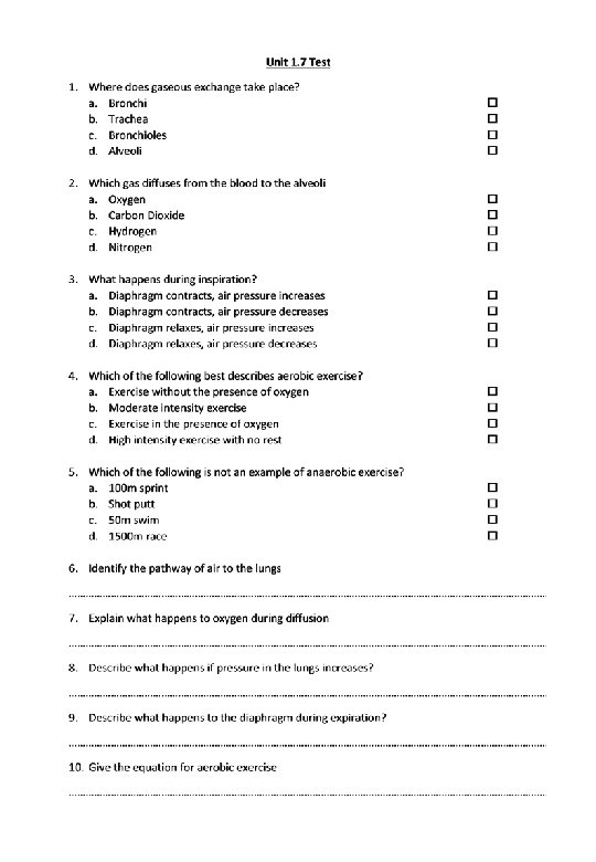 GCSE Respiratory System: What do I need to know? Understand the pathway of air through the respiratory system, know the role of respiratory muscles in breathing, know the minute ventilation equation, know about alveoli as the site of gaseous exchange. Minute Ventilation Equation & Units: Mouth/Nose Alveoli Inspiration Muscles… Chest Cavity Size… Pressure… Air flows… During gaseous exchange, oxygen diffuses from… During gaseous exchange, carbon dioxide diffuses from… Expiration
