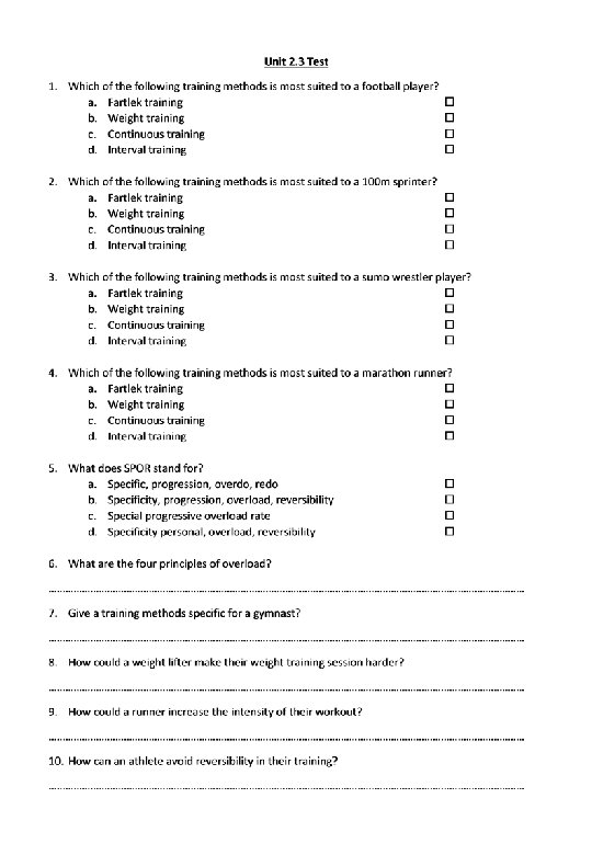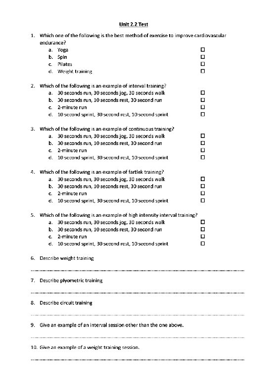 GCSE Methods of Training: What do I need to know? Know the definitions, examples of and who the following methods of training are suitable for. Training Method Circuit Training Fartlek Training Continuous Training Weight Training Plyometric Training Interval Training Definition Example Who would it be suitable for?