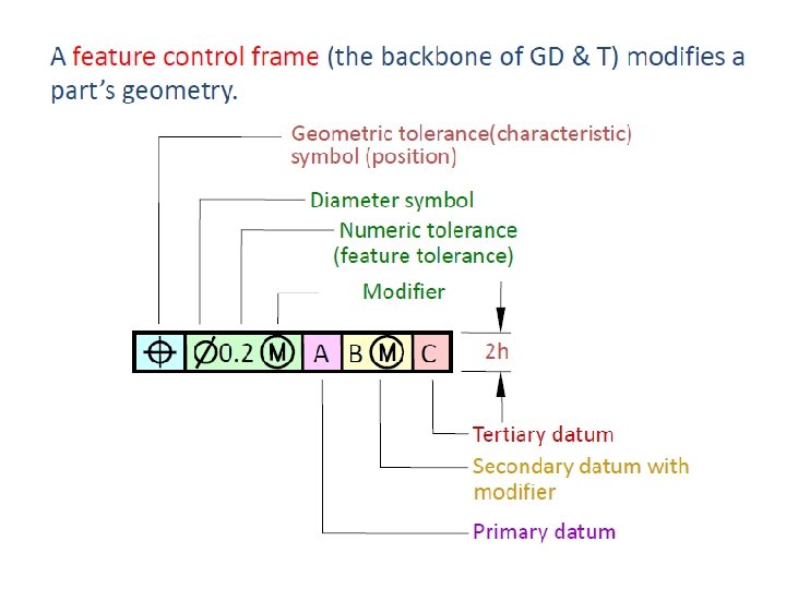 Chapter objectives • List the 14 geometric characteristic symbols • Identify the datum feature symbol • Explain the elements of the feature control frame • List the material condition modifiers • Identify the other symbols used with GD&T • Define critical terms • Explain general rules.