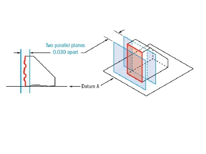 Flatness A two dimensional tolerance zone defined by two parallel planes within which the entire surface must lie.