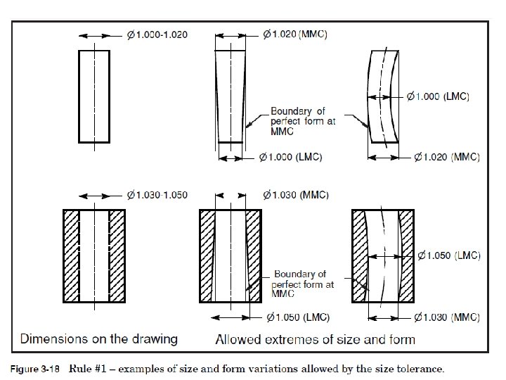 Limit of size • A variation in form is allowed between the least material condition (LMC) and the maximum material condition (MMC). Envelop Principle defines the size and form relationships between mating parts.