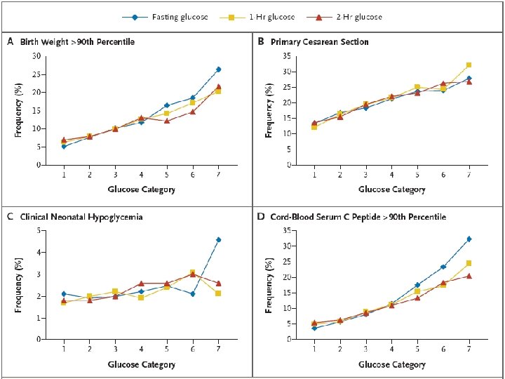 Gestational Diabetes (GDM) • GDM detects an at-risk pregnancy for mother. • GDM detects an at risk pregnancy for the infant. • GDM is associated with increased future maternal life-time risk of Type 2 DM (50%). • GDM is associated with increased rates of obesity and prediabetes in adolescents and type 2 DM in adult life of the offspring. • DIABETES BEGETS DIABETES.
