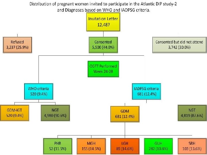 What global factors are contributing to increased GDM prevalence? • Prevalence of Type 2 DM; NHANES 4. 6% (18 -44 y). • Prevalence of pre-diabetes NHANES 26. 4% (18 -44 y). • Prevalence of Obesity, 20 -30% global estimates. • Rising maternal age for pregnancy. School Institute Name to go here