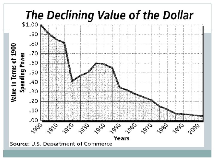The Effects of Rising Prices • Inflation is a general increase in prices. • Purchasing power, the ability to purchase goods and services, is decreased by rising prices. • Price level is the relative cost of goods and services in the entire economy at a given point in time.