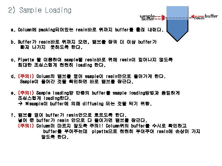 5) Sample application 1. Volume of sample for optimal separation (1 -3% of the total volume) - Because of Diffusion effect 1% 4. 2% 2. Concentration of sample (10 -20 mg/ml, 30 mg/ml at most. Not exceed 70 mg/ml) 3. Viscosity of sample No viscosity