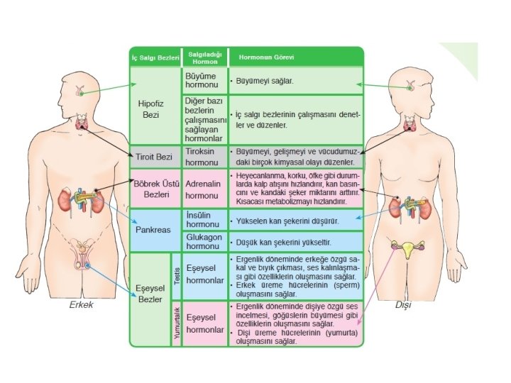 İÇ SALGI BEZLERİ Gelişimin biyolojik temellerinden biri de iç salgı bezlerinin salgıları olan hormonlardır. İç salgı bezleri salgılarıyla, sinir sistemi ve kas sistemiyle birlikte çalıştıklarından organizma tepkilerinin düzenli olmasını sağlamada da etkili bir sistemdir. Yani hormonlar, gelişimi ve davranışları etkileyen bir kuvvettir.