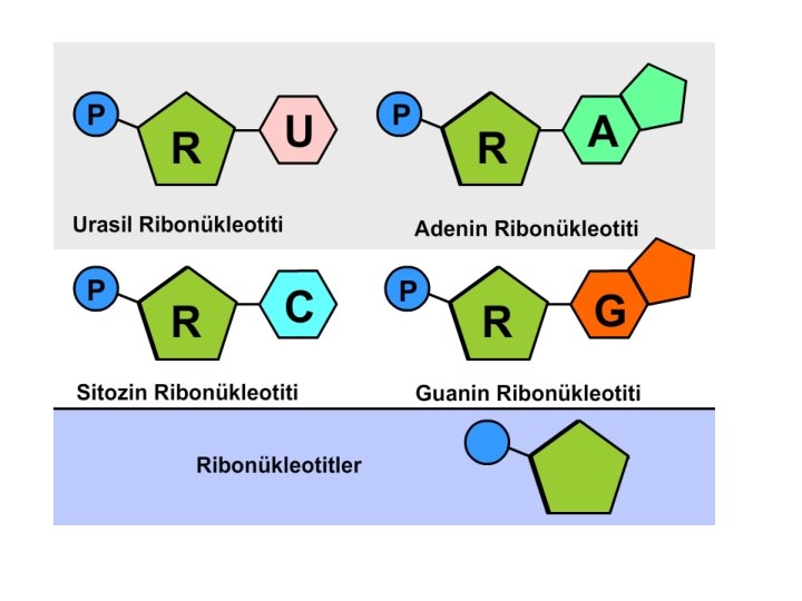 Riboz-fosfat köprüsü Azotlu organik baz Adenin Urasil Guanin Sitozin