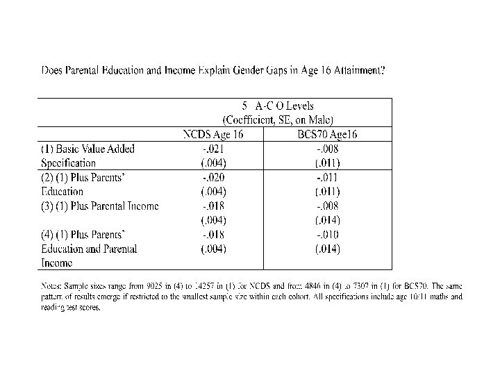 Implications • Gaps appear to have widened out in secondary school years over time. • English: wide gap in favour of girls that persists over time. • Maths: gender gap changes over time (in favour of boys in 70 s and 80 s, in favour of girls in 90 s and 00 s)